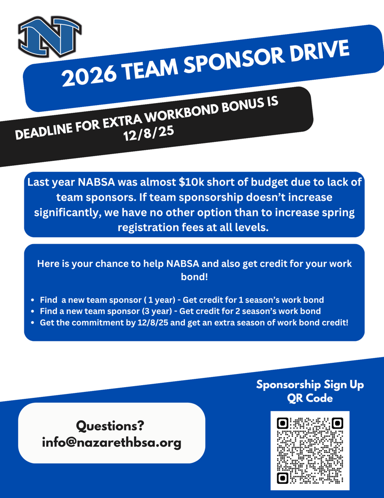 Help us find a team sponsor and get work bond credit. Deadline for bonus is 12/8.