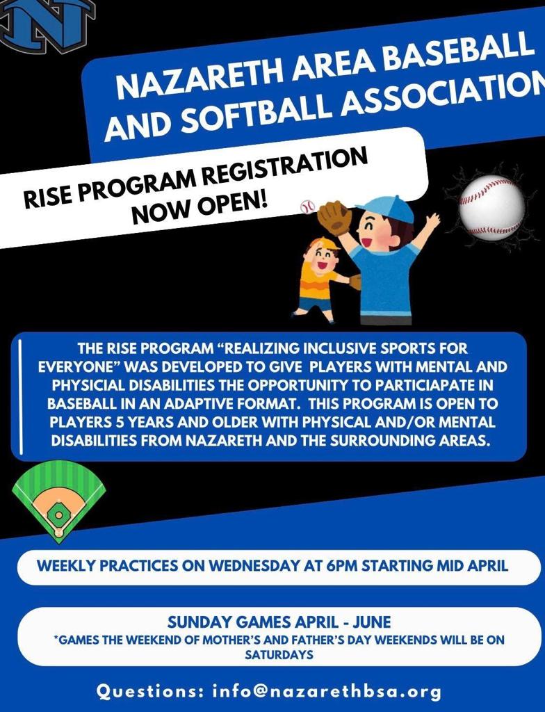 Softball Minors and Juniors levels are currently full. To be placed on the wait list please reach out to Carin Conus at cconus@nazarethbsa.org